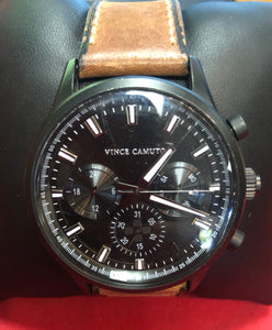 Pre-owned Vince Camuto VC/1096BKBN Men's Chronograph Watch w/ Leather Band  - Vendor