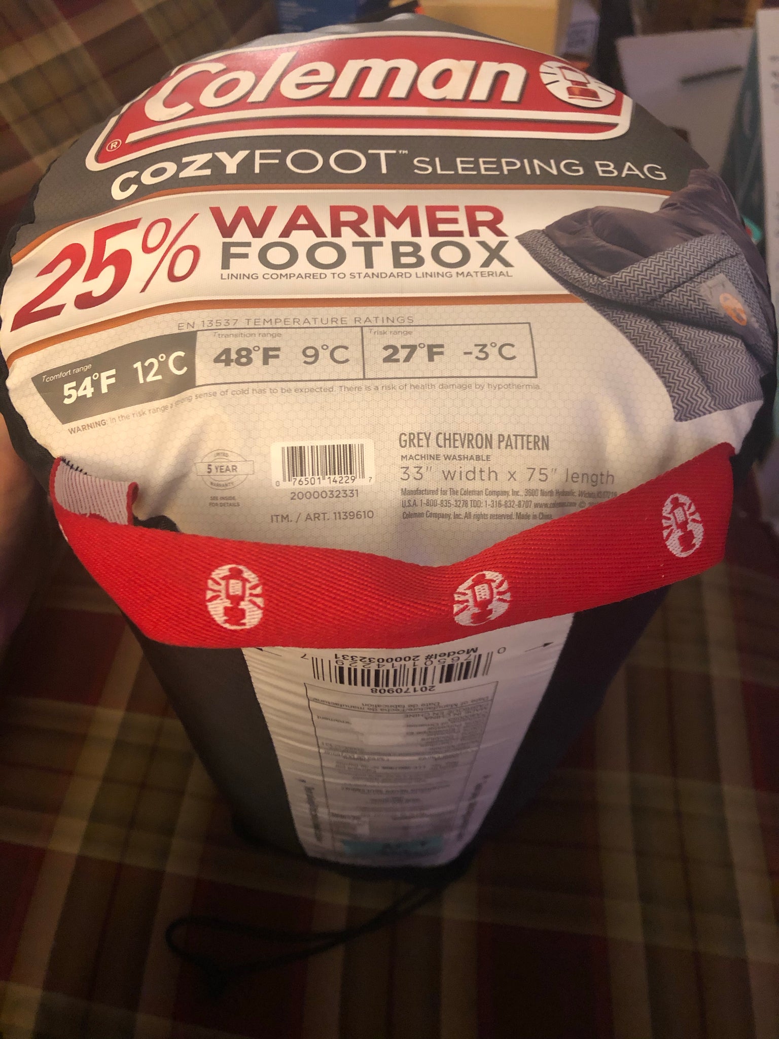 Coleman Cozyfoot Sleeping Bag Grey Chevron Pattern 25% Warmer Footbox. Here is the sleeping bag for outdoor and indoor trips.